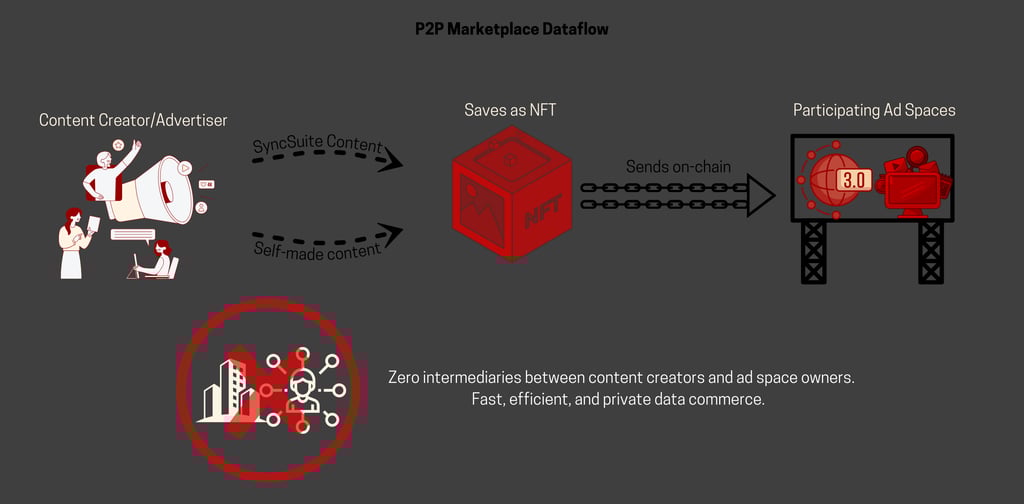 Built to scale on Solana. The Marketplace is a transparent P2P market for ad space on any screen, website, or metaverse. Monetize your ad space or advertise on global network. On and off chain data allows our users to target specific niches more effectively.