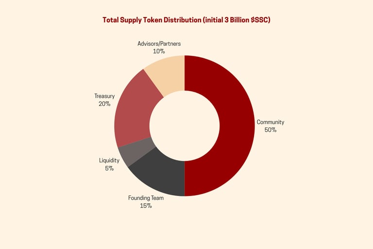 Advisors/Partners: Advisors and partners are allocated an initial 10% of $SSC, distributed over a 4 year term. This ensures ongoing support from key strategic partners and advisors as the platform evolves.